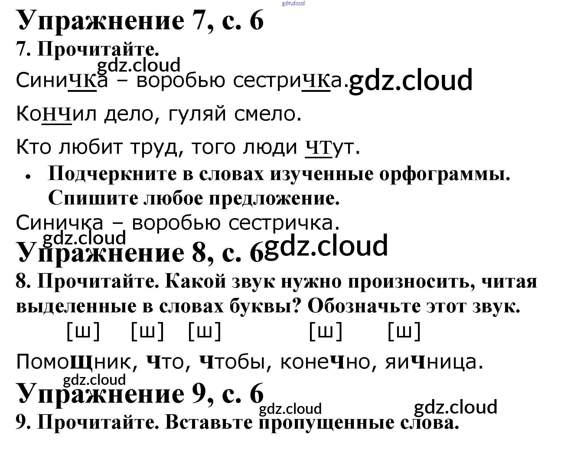 Ответ на задание 6 Рабочая тетрадь Русский язык за 2 (второй) класс Канакина Школа России 2012 Часть 1, 2