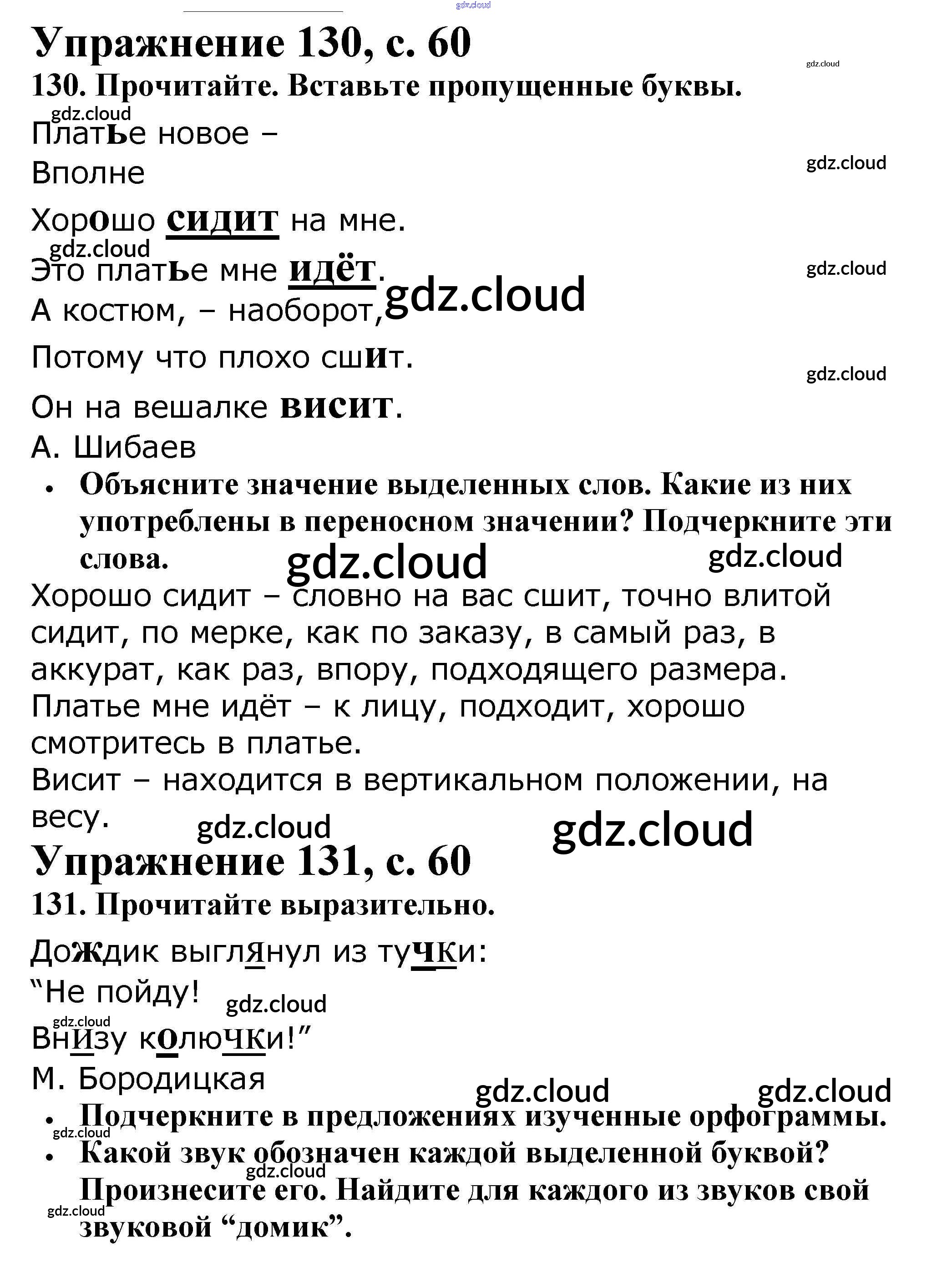 Ответ на задание 60 Рабочая тетрадь Русский язык за 2 (второй) класс Канакина Школа России 2012 Часть 1, 2