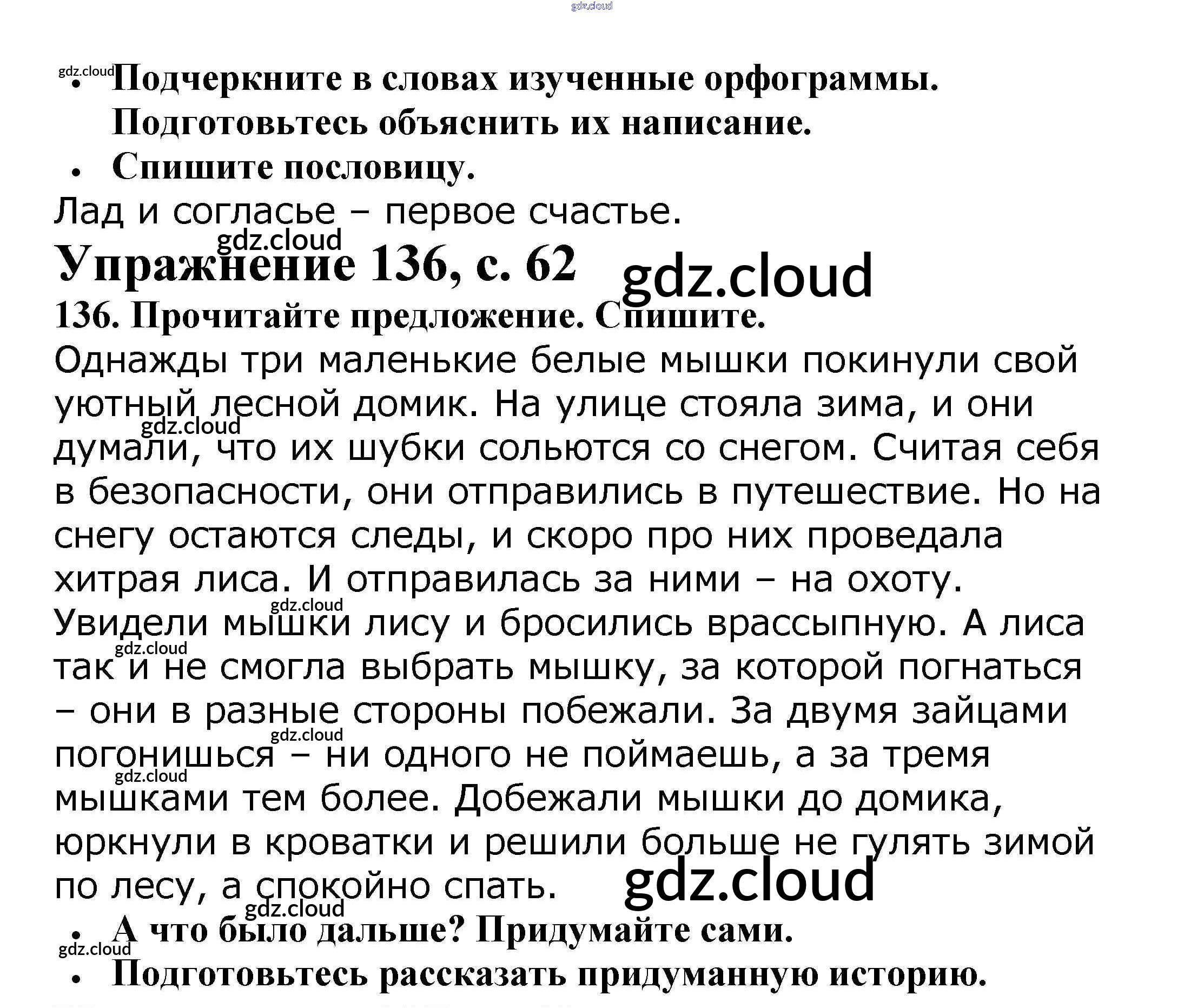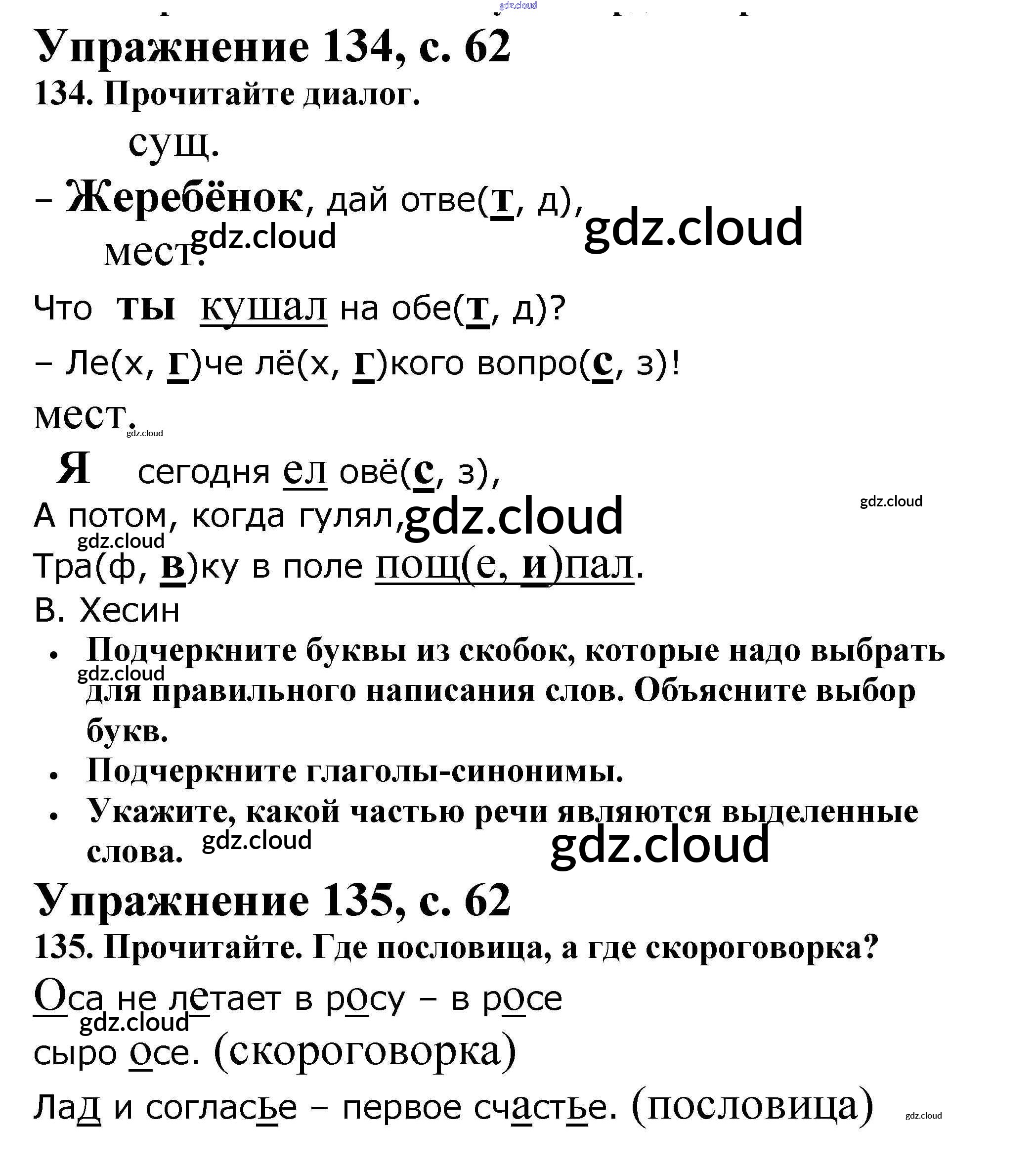 Ответ на задание 62 Рабочая тетрадь Русский язык за 2 (второй) класс Канакина Школа России 2012 Часть 1, 2