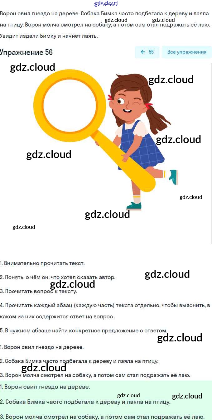 Ответ на задание 56 Рабочая тетрадь Русский язык за 2 (второй) класс Климанова, Бабушкина Перспектива 2016, 2020 Часть 1, 2