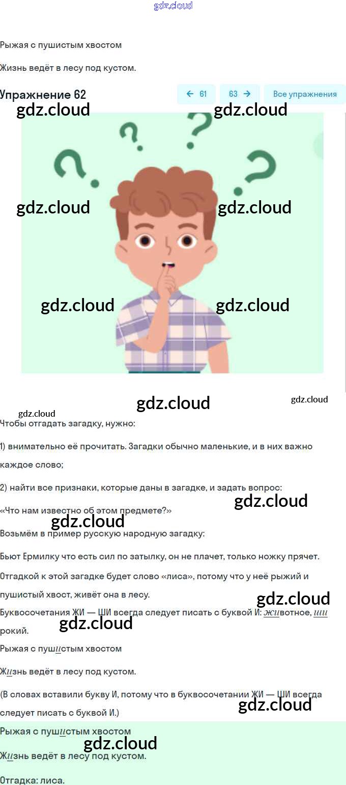 Ответ на задание 62 Рабочая тетрадь Русский язык за 2 (второй) класс Климанова, Бабушкина Перспектива 2016, 2020 Часть 1, 2