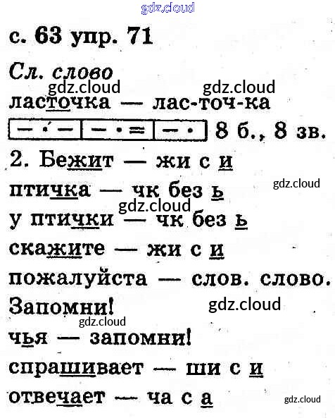 Ответ на задание 71 Учебник Русский язык за 2 (второй) класс Рудяков, Челышева 2012 онлайн и без номера телефона.