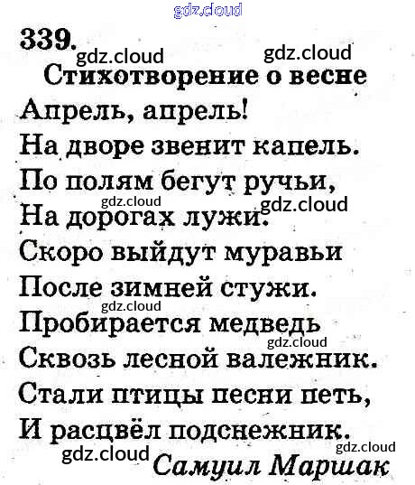 Ответ на задание 339 Учебник Русский язык за 2 (второй) класс Самонова, Статовка 2012 онлайн и без номера телефона.