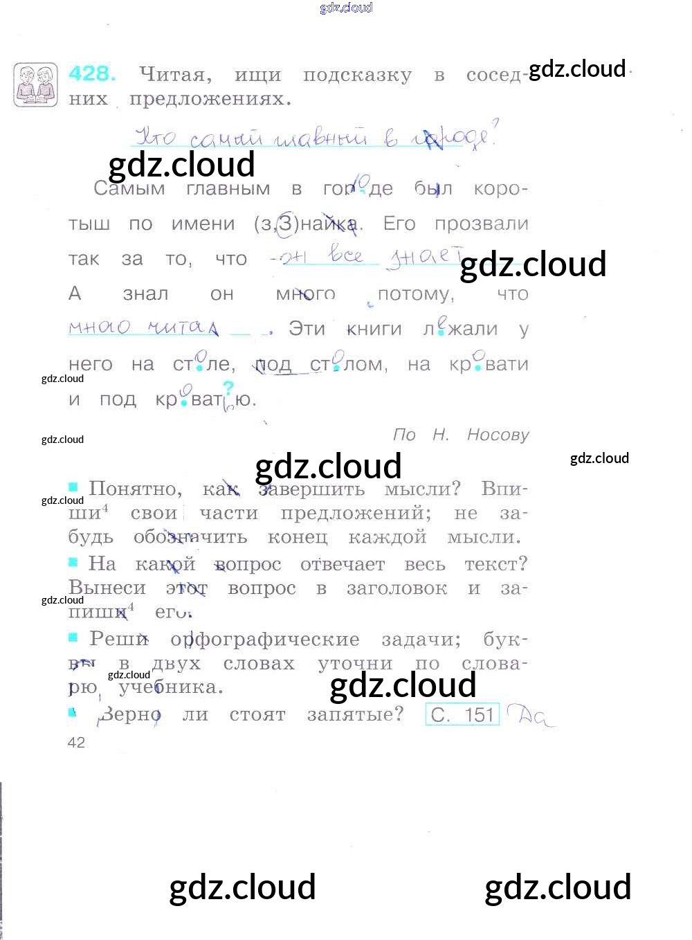Ответ на задание 42 Рабочая тетрадь Русский язык за 2 (второй) класс Соловейчик, Кузьменко Гармония 2012 Часть 1, 2, 3