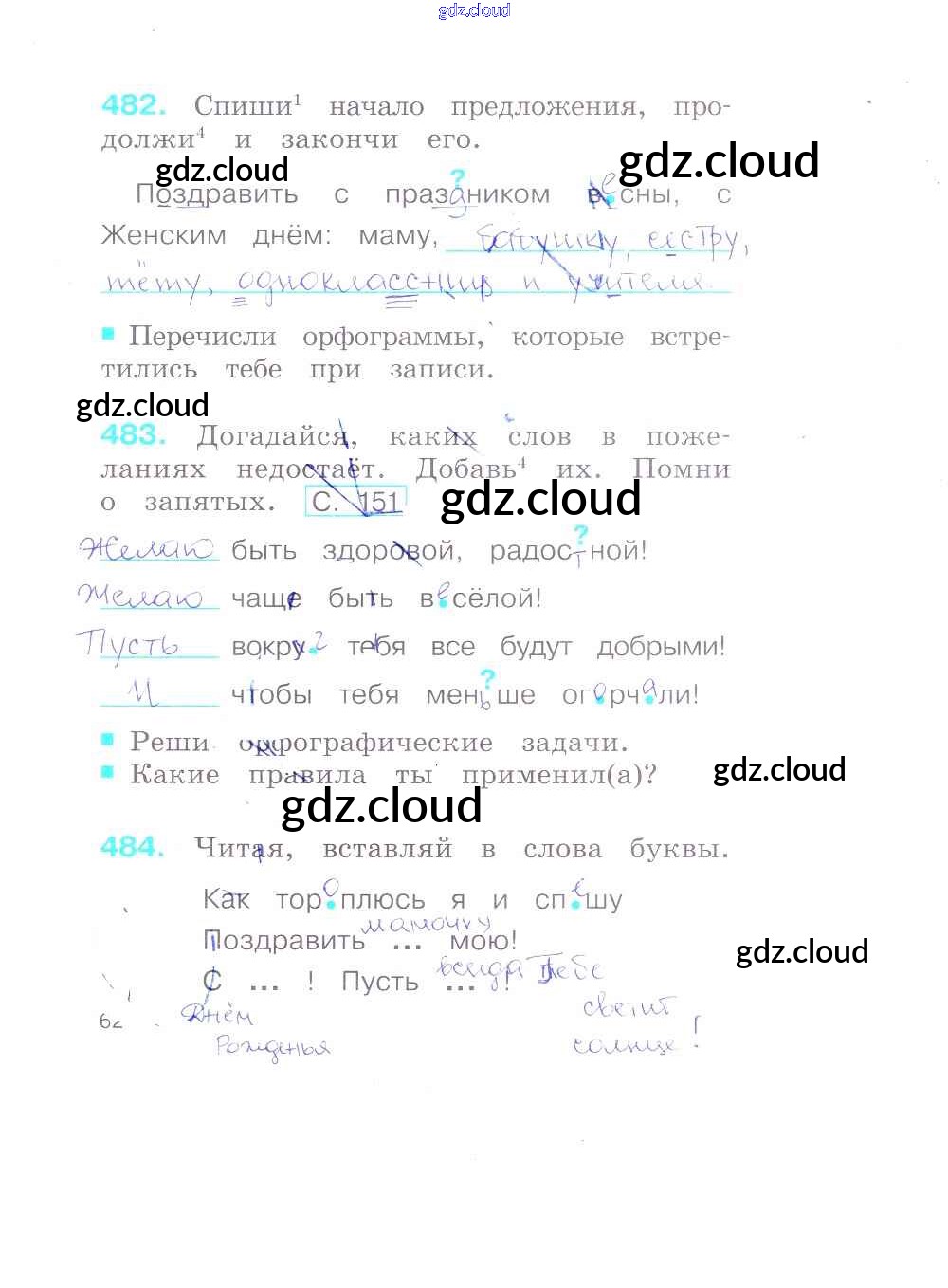 Ответ на задание 62 Рабочая тетрадь Русский язык за 2 (второй) класс Соловейчик, Кузьменко Гармония 2012 Часть 1, 2, 3
