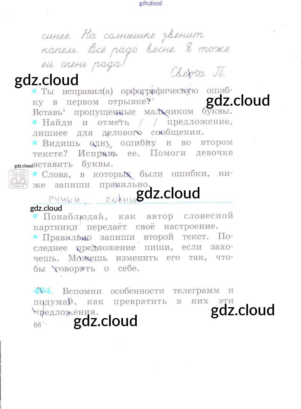 Ответ на задание 66 Рабочая тетрадь Русский язык за 2 (второй) класс Соловейчик, Кузьменко Гармония 2012 Часть 1, 2, 3