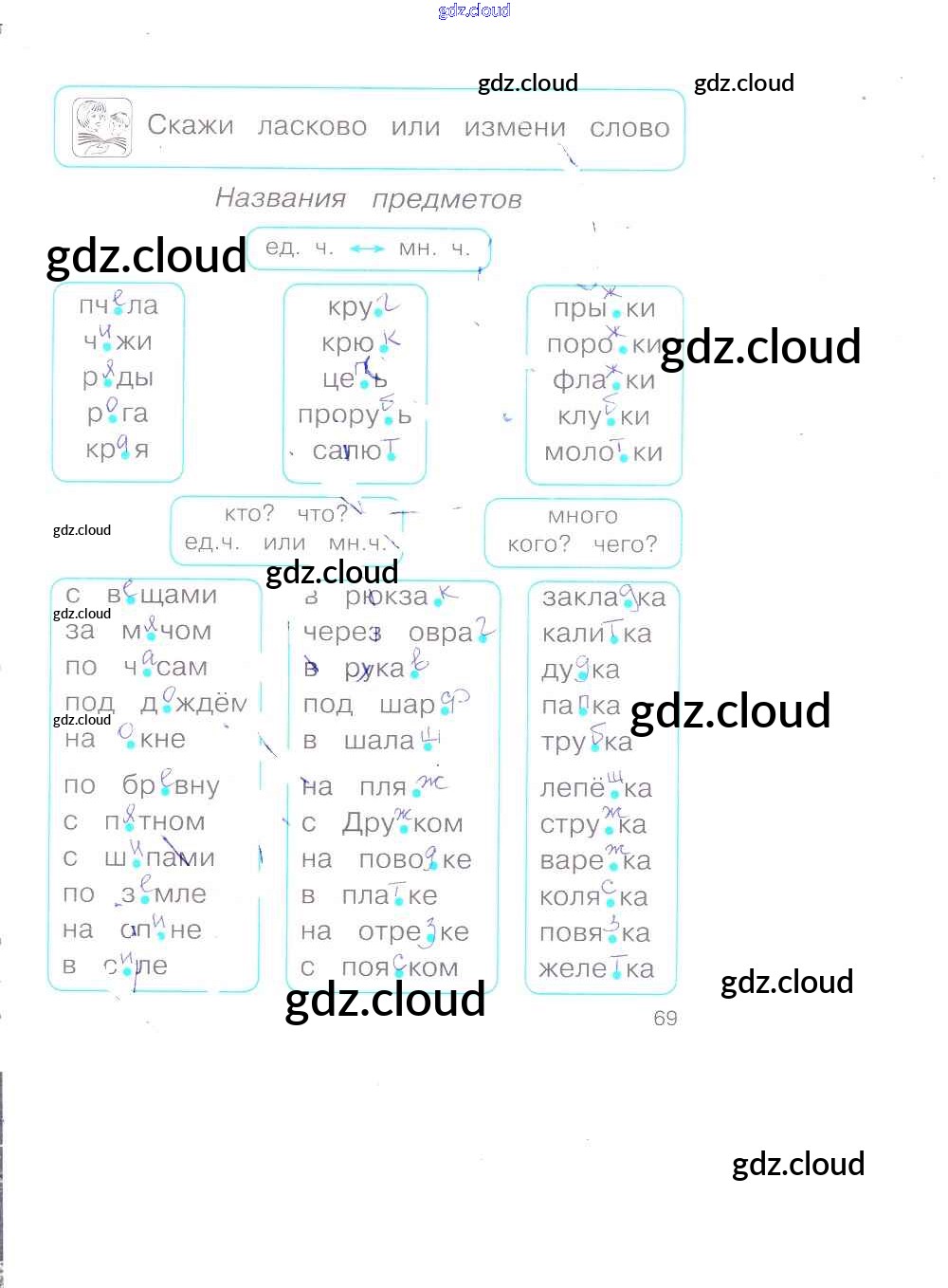 Ответ на задание 69 Рабочая тетрадь Русский язык за 2 (второй) класс Соловейчик, Кузьменко Гармония 2012 Часть 1, 2, 3