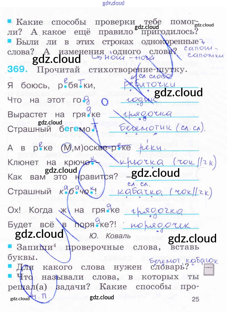 Ответ на задание 25 Рабочая тетрадь Русский язык за 2 (второй) класс Соловейчик, Кузьменко Гармония 2012 Часть 1, 2, 3