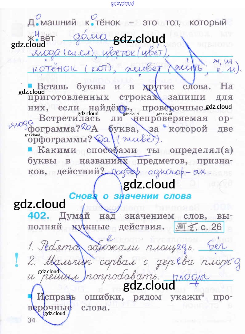 Ответ на задание 34 Рабочая тетрадь Русский язык за 2 (второй) класс Соловейчик, Кузьменко Гармония 2012 Часть 1, 2, 3