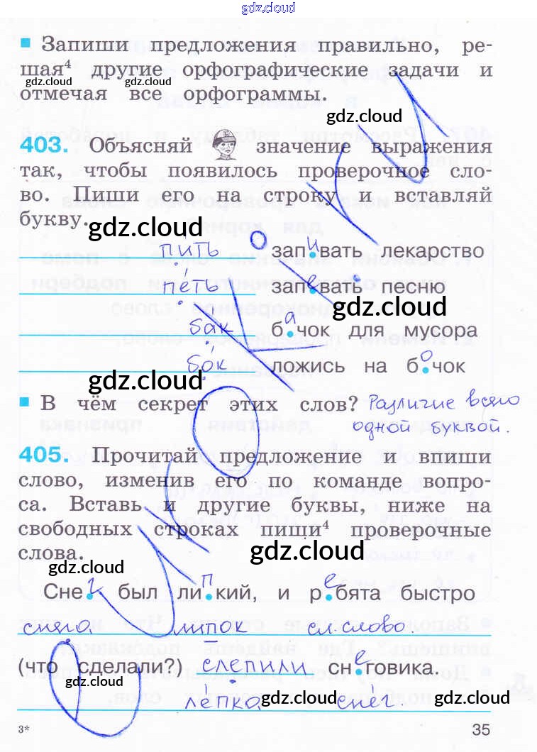 Ответ на задание 35 Рабочая тетрадь Русский язык за 2 (второй) класс Соловейчик, Кузьменко Гармония 2012 Часть 1, 2, 3