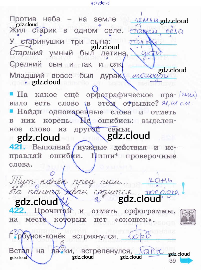 Ответ на задание 39 Рабочая тетрадь Русский язык за 2 (второй) класс Соловейчик, Кузьменко Гармония 2012 Часть 1, 2, 3
