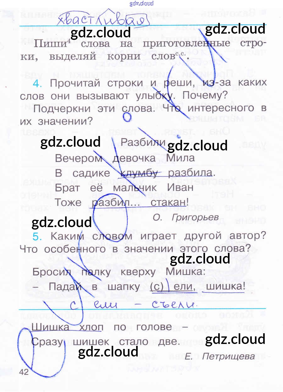 Ответ на задание 42 Рабочая тетрадь Русский язык за 2 (второй) класс Соловейчик, Кузьменко Гармония 2012 Часть 1, 2, 3