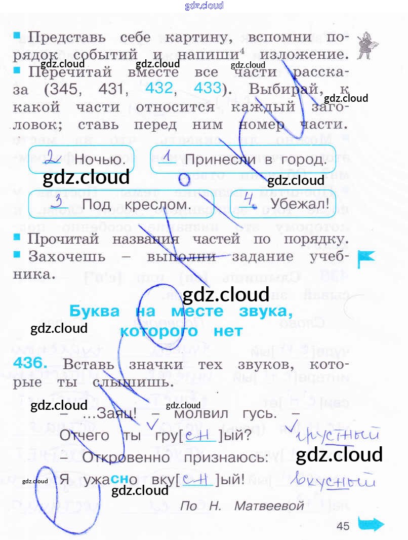 Ответ на задание 45 Рабочая тетрадь Русский язык за 2 (второй) класс Соловейчик, Кузьменко Гармония 2012 Часть 1, 2, 3