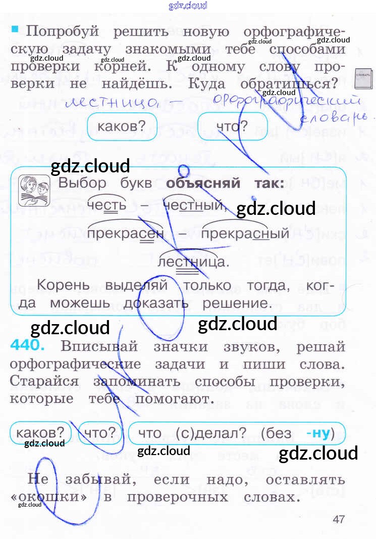Ответ на задание 47 Рабочая тетрадь Русский язык за 2 (второй) класс Соловейчик, Кузьменко Гармония 2012 Часть 1, 2, 3