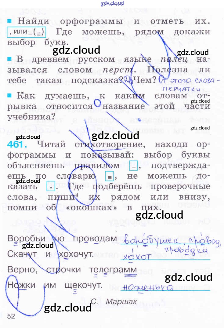 Ответ на задание 52 Рабочая тетрадь Русский язык за 2 (второй) класс Соловейчик, Кузьменко Гармония 2012 Часть 1, 2, 3