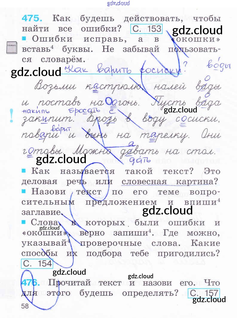 Ответ на задание 58 Рабочая тетрадь Русский язык за 2 (второй) класс Соловейчик, Кузьменко Гармония 2012 Часть 1, 2, 3