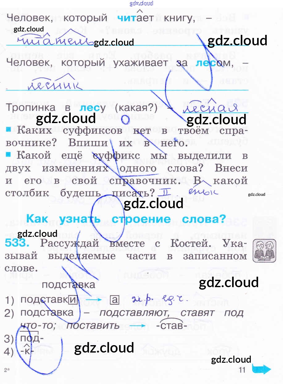 Ответ на задание 11 Рабочая тетрадь Русский язык за 2 (второй) класс Соловейчик, Кузьменко Гармония 2012 Часть 1, 2, 3