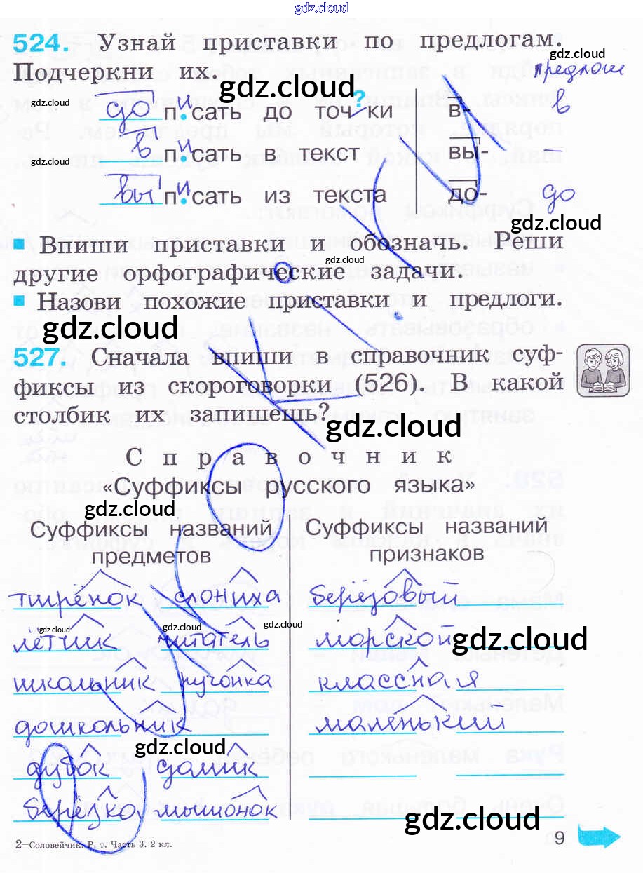 Ответ на задание 9 Рабочая тетрадь Русский язык за 2 (второй) класс Соловейчик, Кузьменко Гармония 2012 Часть 1, 2, 3