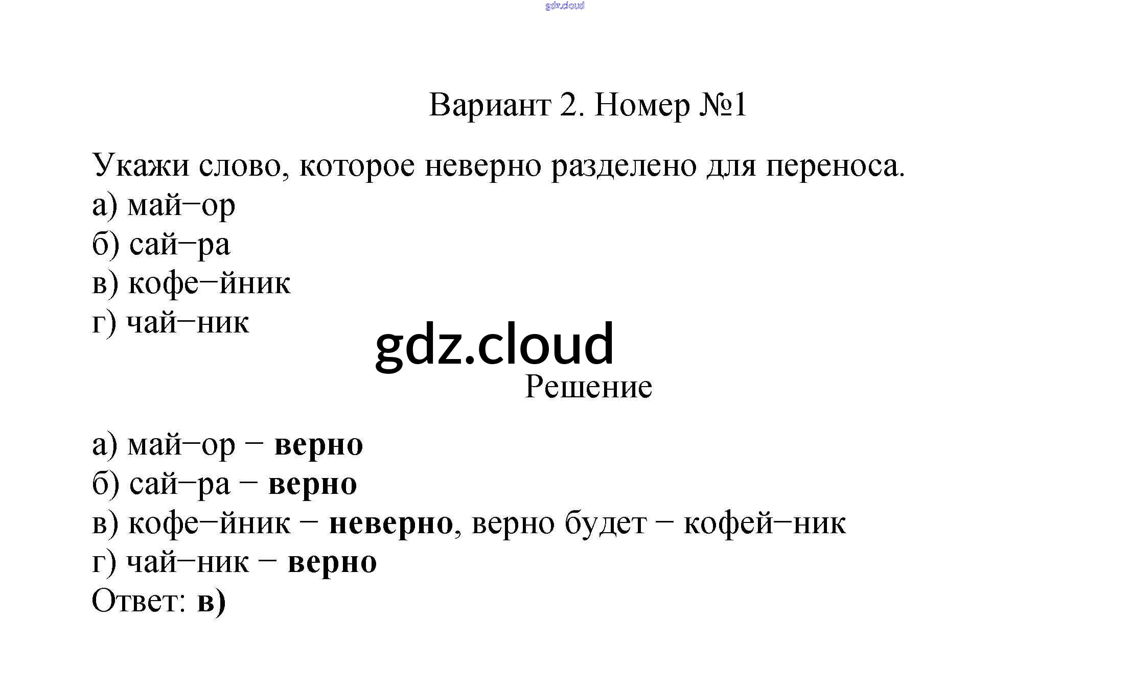 Ответ на задание 1 Тесты Русский язык за 2 (второй) класс Тихомирова УМК 2020 Часть 1, 2