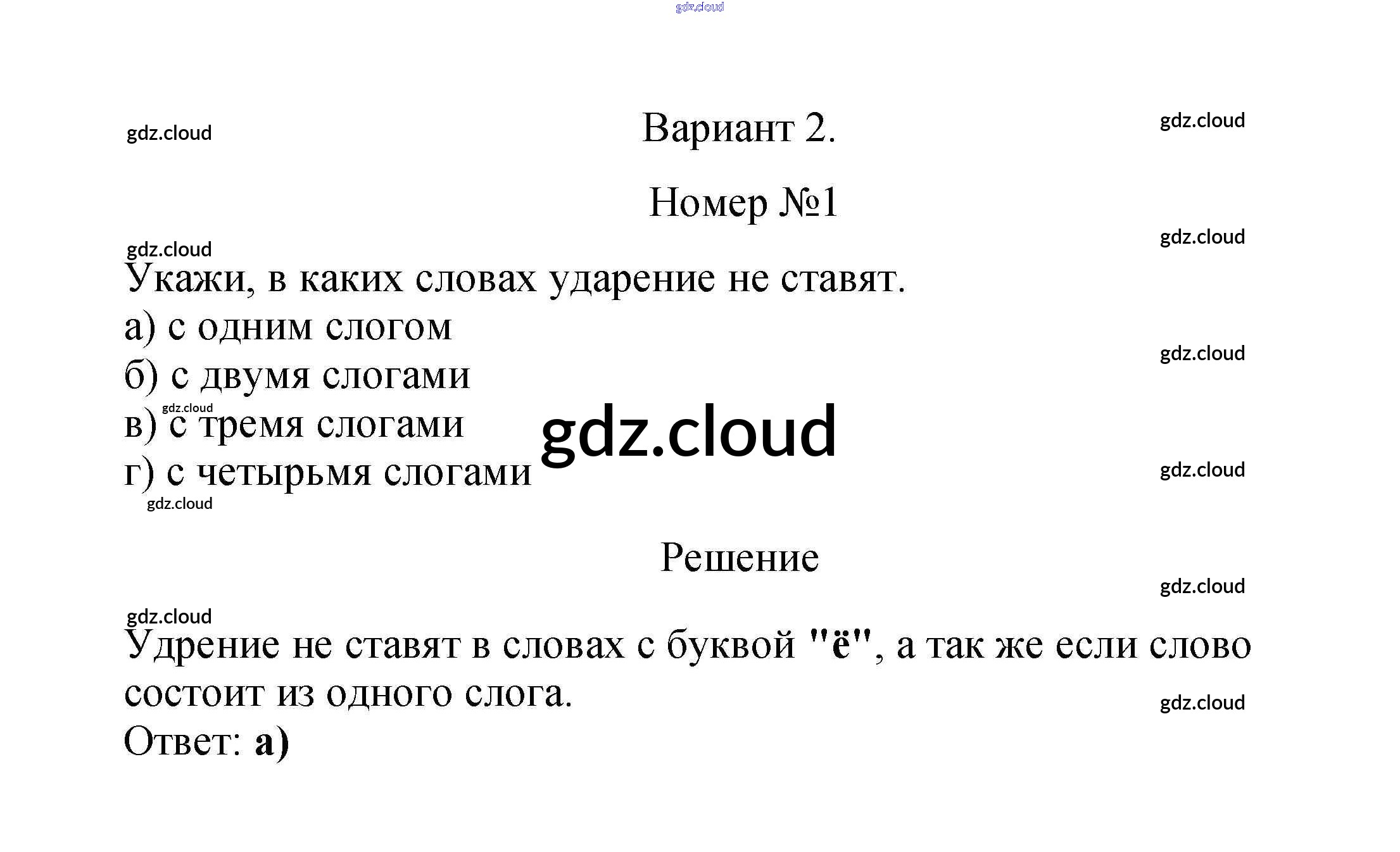 Вариант 2 Ответы к тесту 8. Ударение. Ударный слог по Русскому языку 2 класс Тесты Тихомирова УМК Часть 1, 2 Экзамен
