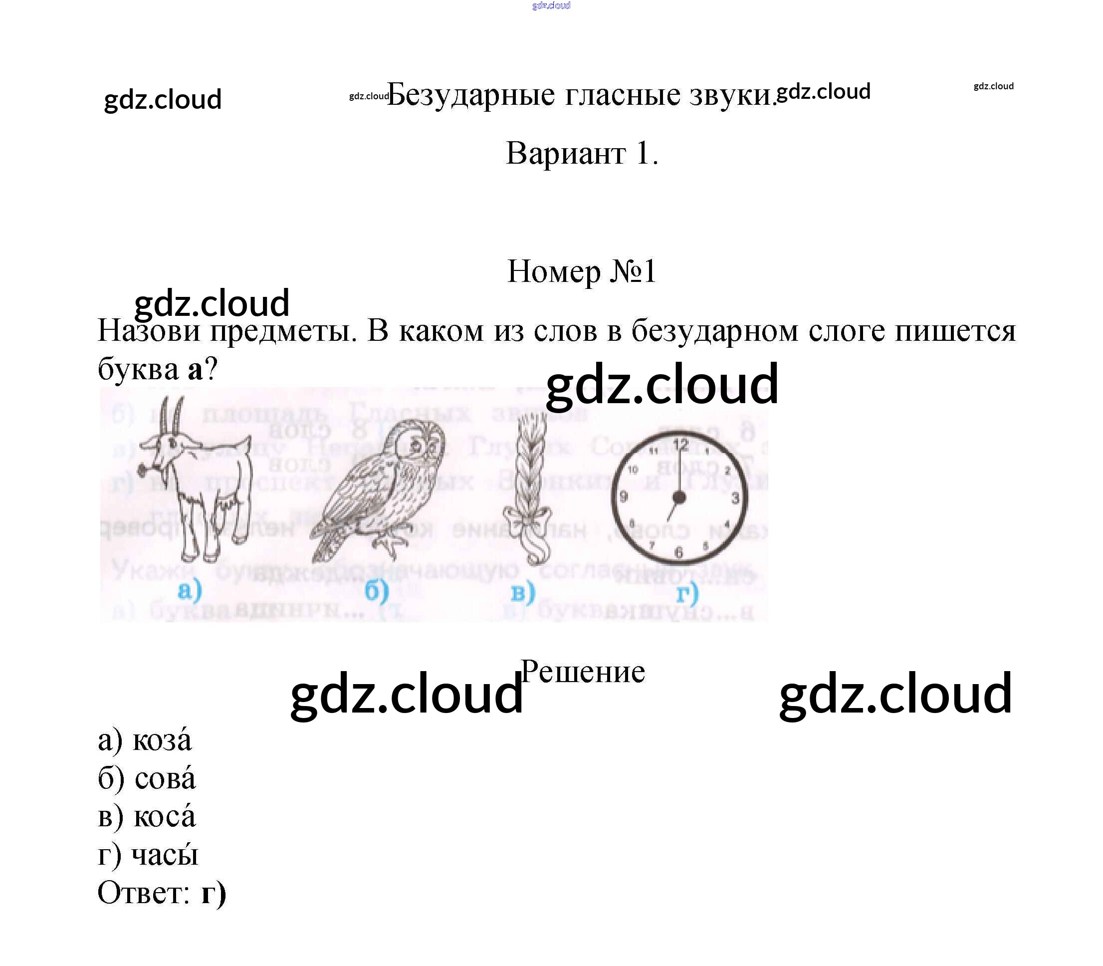 Вариант 1 Ответы к тесту 9. Безударные гласные звуки. Их обозначение на письме по Русскому языку 2 класс Тесты Тихомирова УМК Часть 1, 2 Экзамен