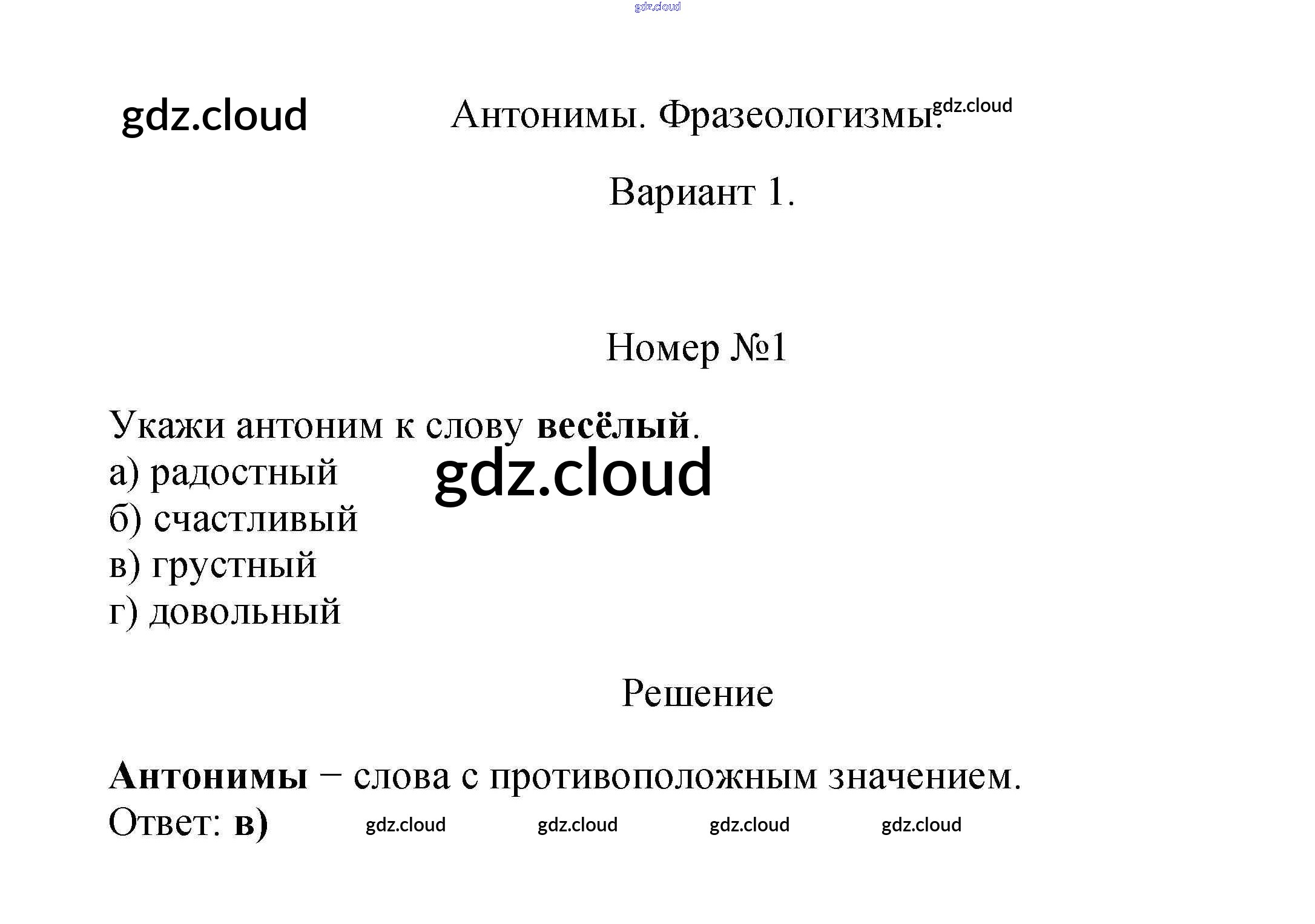 Вариант 1 Ответы к тесту 17. Слова противоположные по значению (антонимы). Устойчивые сочетания слов (фразеологизимы) по Русскому языку 2 класс Тесты Тихомирова УМК Часть 1, 2 Экзамен