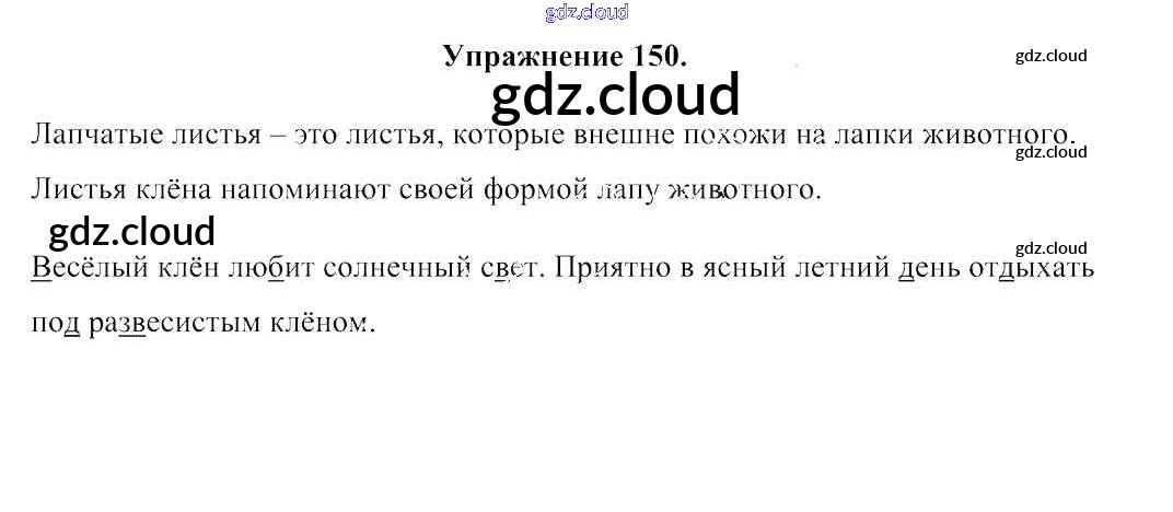 Ответ на задание упр.150 Учебник Русский язык за 2 (второй) класс Антипова, Верниковская, Грабчикова 2019 Часть 1, 2