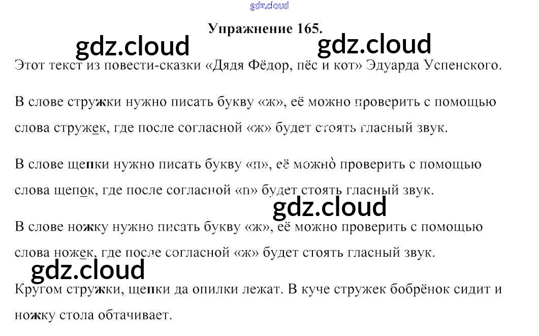 Ответ на задание упр.165 Учебник Русский язык за 2 (второй) класс Антипова, Верниковская, Грабчикова 2019 Часть 1, 2