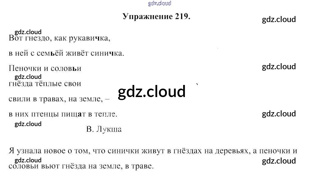 Ответ на задание упр.219 Учебник Русский язык за 2 (второй) класс Антипова, Верниковская, Грабчикова 2019 Часть 1, 2