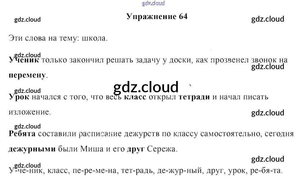 Ответ на задание упр.64 Учебник Русский язык за 2 (второй) класс Антипова, Верниковская, Грабчикова 2019 Часть 1, 2