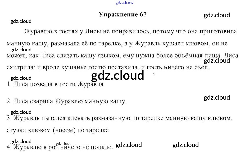Ответ на задание упр.67 Учебник Русский язык за 2 (второй) класс Антипова, Верниковская, Грабчикова 2019 Часть 1, 2