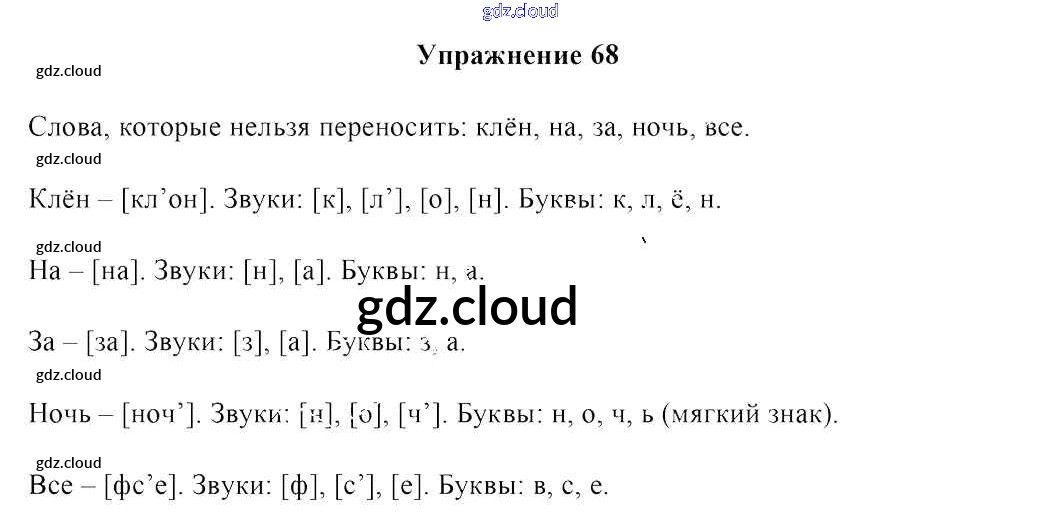 Ответ на задание упр.68 Учебник Русский язык за 2 (второй) класс Антипова, Верниковская, Грабчикова 2019 Часть 1, 2