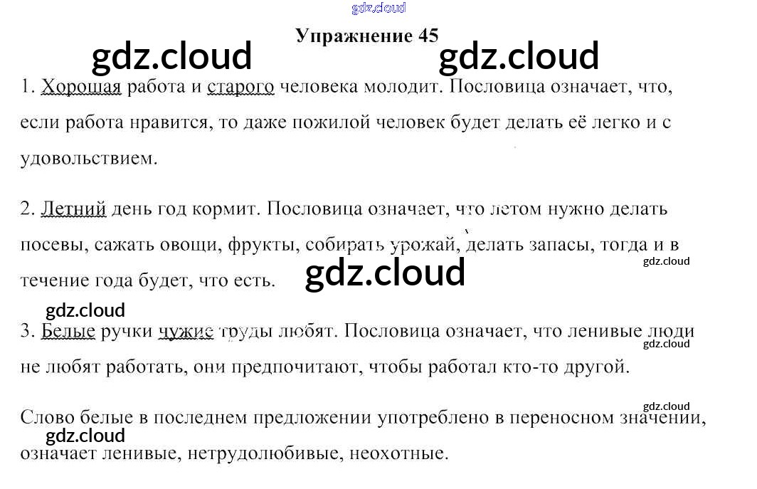 Ответ на задание упр.45 Учебник Русский язык за 2 (второй) класс Антипова, Верниковская, Грабчикова 2019 Часть 1, 2