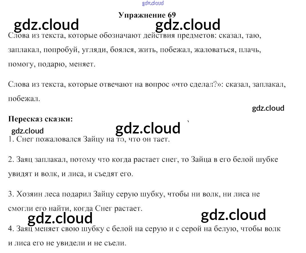 Ответ на задание упр.69 Учебник Русский язык за 2 (второй) класс Антипова, Верниковская, Грабчикова 2019 Часть 1, 2