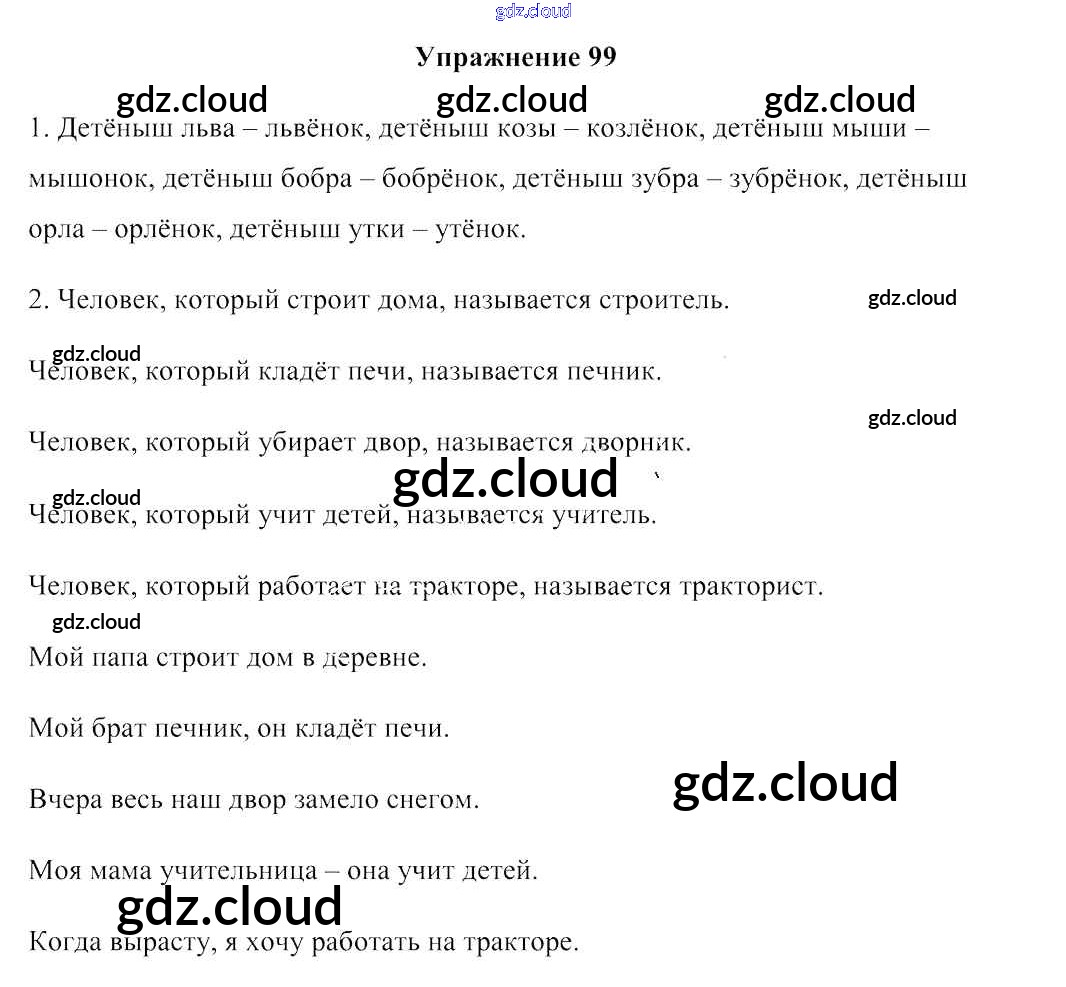 Ответ на задание упр.99 Учебник Русский язык за 2 (второй) класс Антипова, Верниковская, Грабчикова 2019 Часть 1, 2
