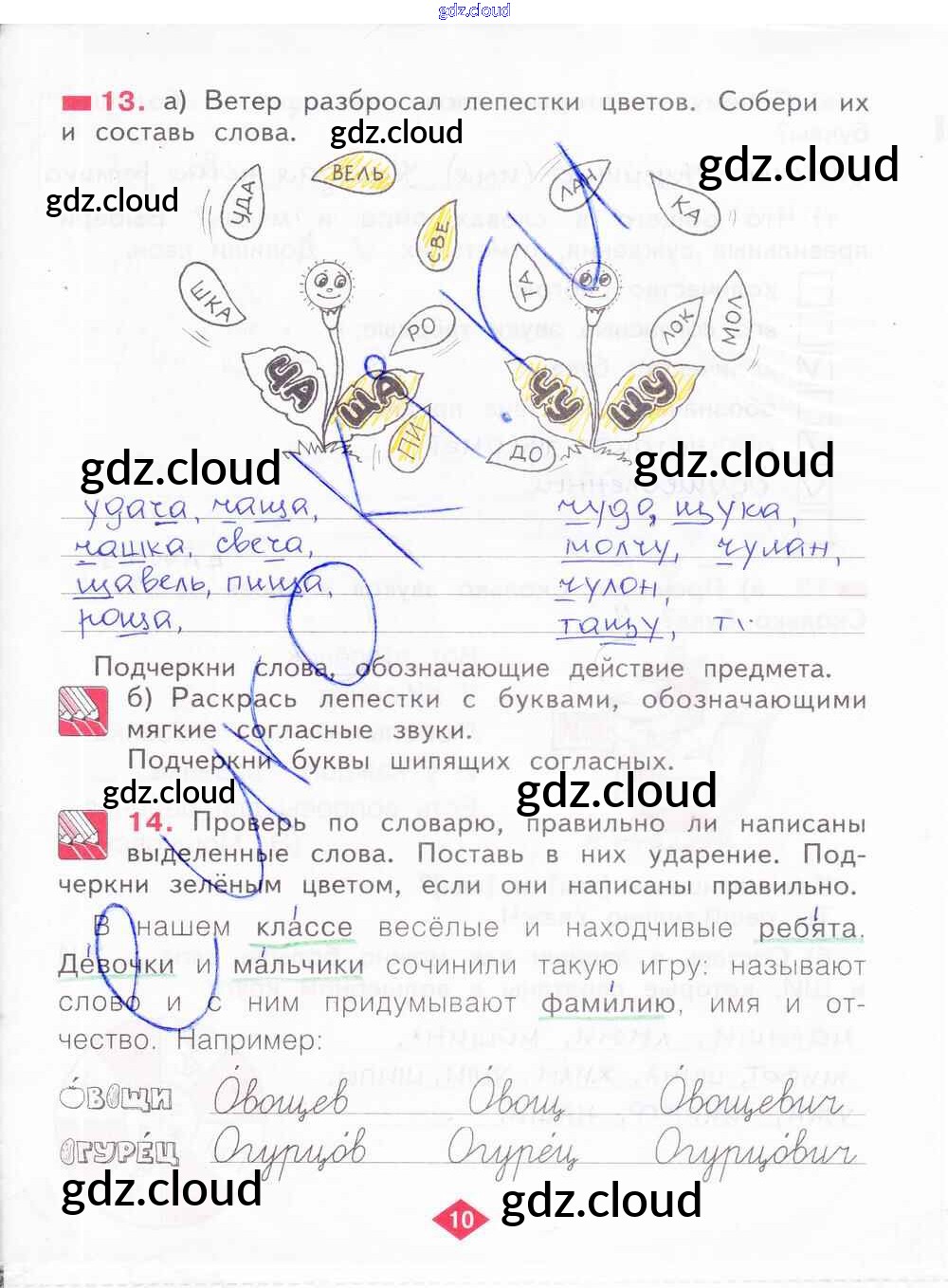 Ответ на задание 10 Рабочая тетрадь Русский язык за 2 (второй) класс Яковлева 2015 Часть 1, 2, 3, 4