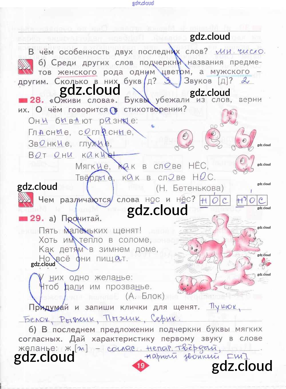 Ответ на задание 19 Рабочая тетрадь Русский язык за 2 (второй) класс Яковлева 2015 Часть 1, 2, 3, 4