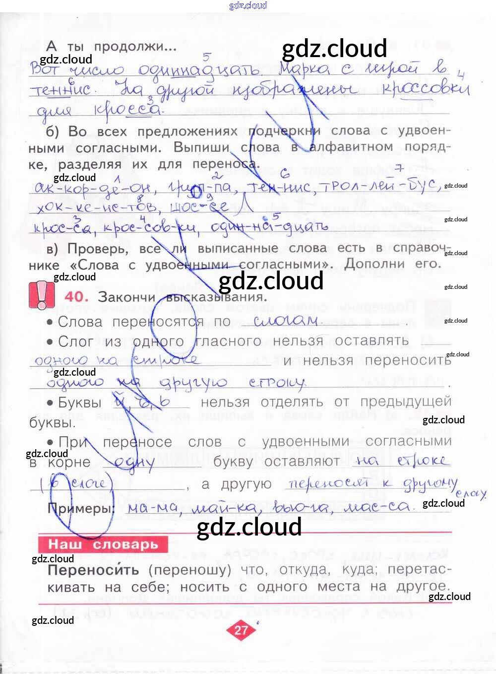 Ответ на задание 27 Рабочая тетрадь Русский язык за 2 (второй) класс Яковлева 2015 Часть 1, 2, 3, 4