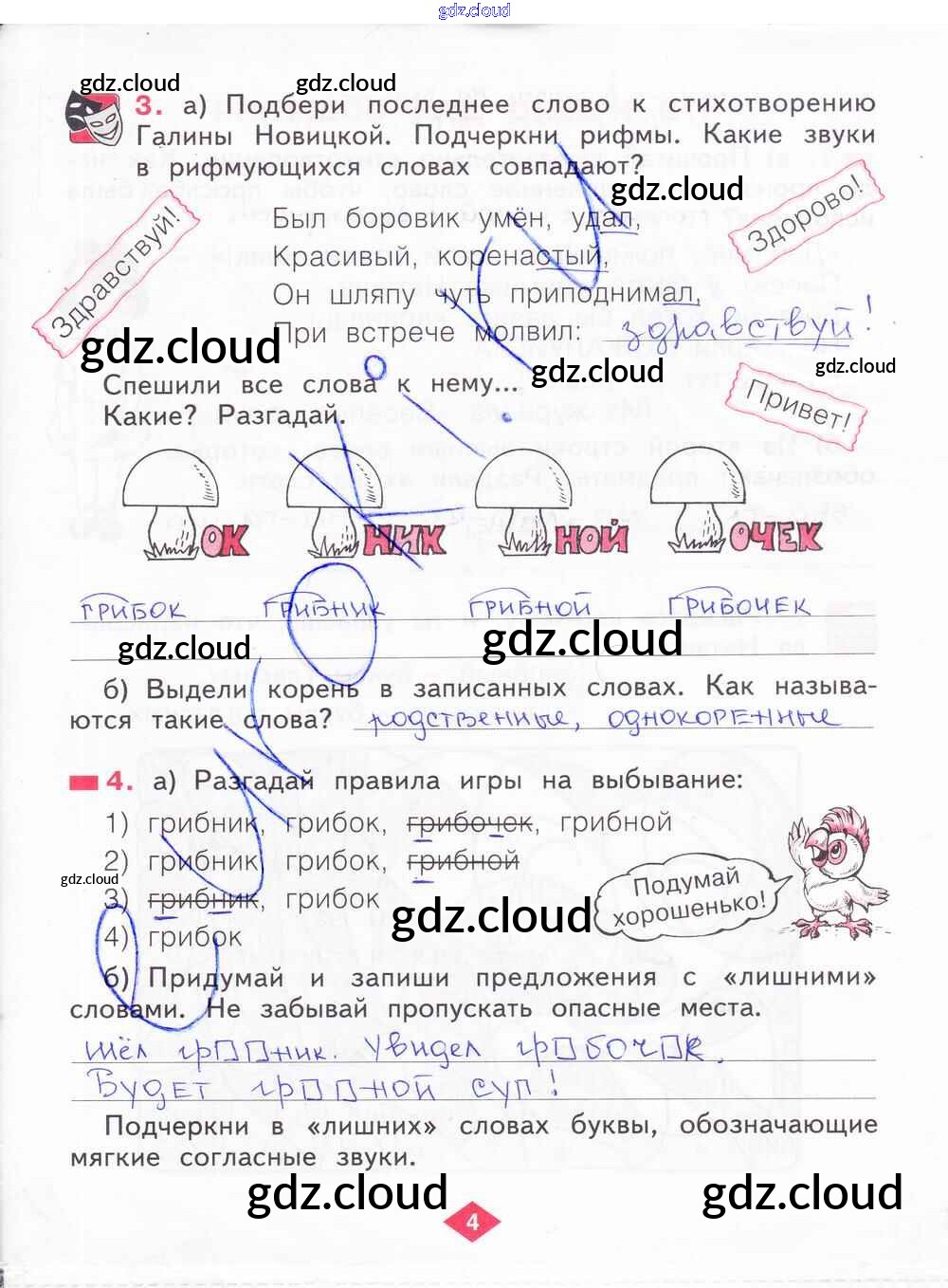 Ответ на задание 4 Рабочая тетрадь Русский язык за 2 (второй) класс Яковлева 2015 Часть 1, 2, 3, 4