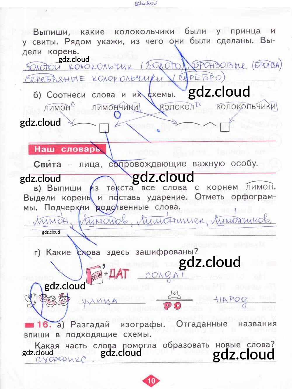 Ответ на задание 10 Рабочая тетрадь Русский язык за 2 (второй) класс Яковлева 2015 Часть 1, 2, 3, 4