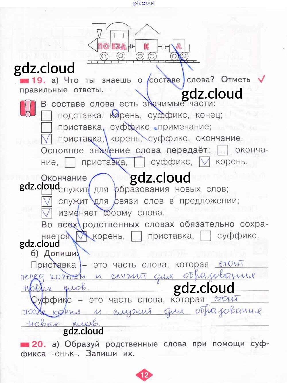 Ответ на задание 12 Рабочая тетрадь Русский язык за 2 (второй) класс Яковлева 2015 Часть 1, 2, 3, 4