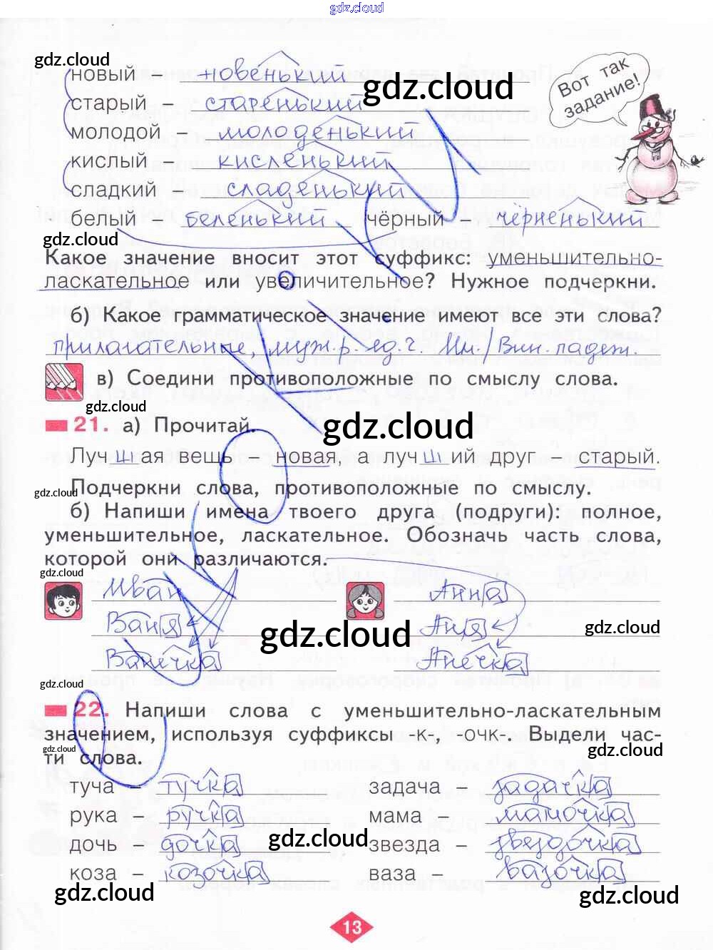 Ответ на задание 13 Рабочая тетрадь Русский язык за 2 (второй) класс Яковлева 2015 Часть 1, 2, 3, 4