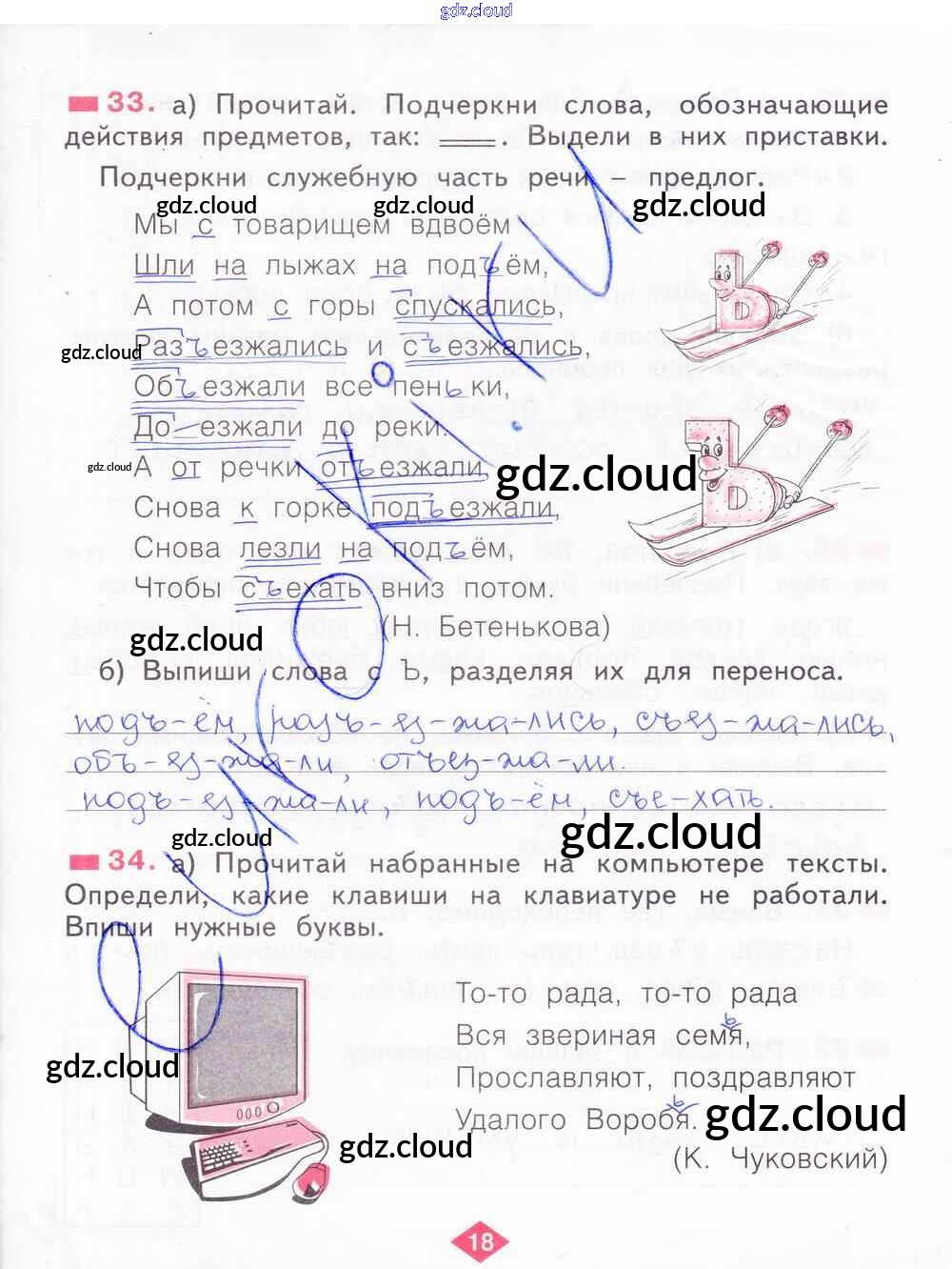 Ответ на задание 18 Рабочая тетрадь Русский язык за 2 (второй) класс Яковлева 2015 Часть 1, 2, 3, 4