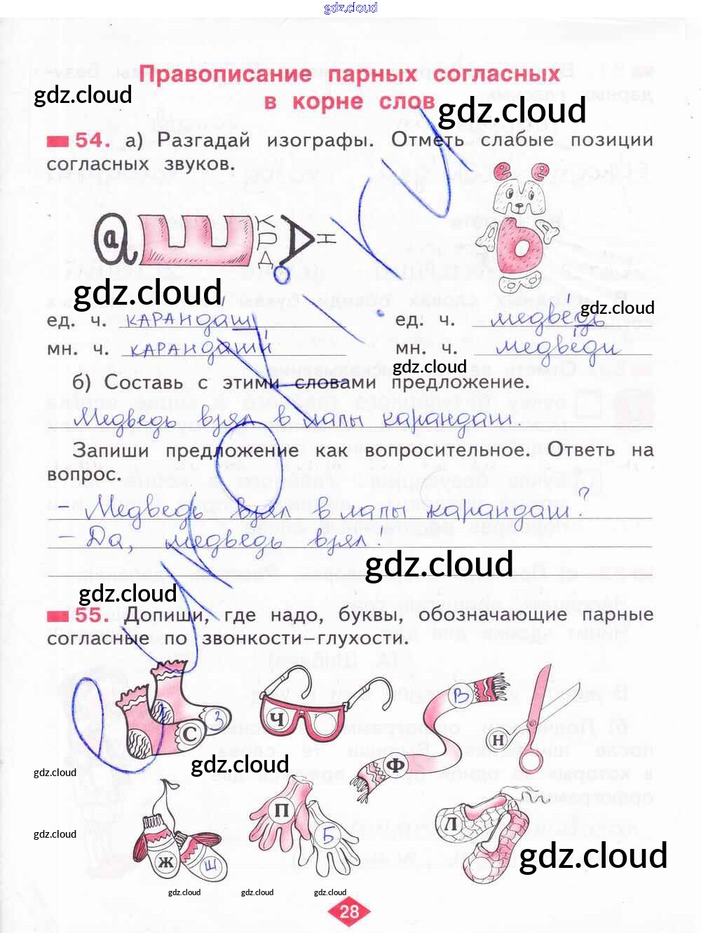 Ответ на задание 28 Рабочая тетрадь Русский язык за 2 (второй) класс Яковлева 2015 Часть 1, 2, 3, 4