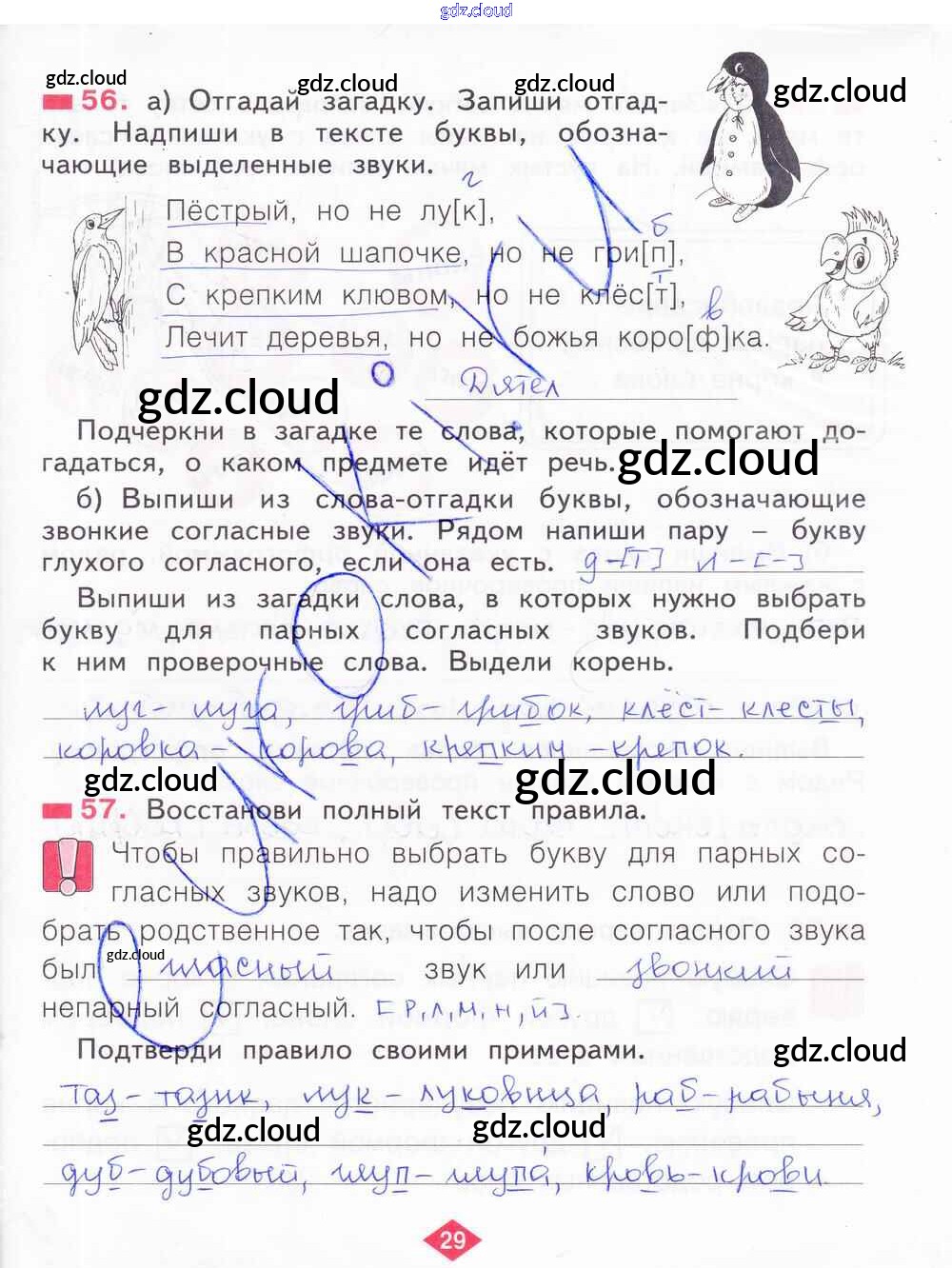 Ответ на задание 29 Рабочая тетрадь Русский язык за 2 (второй) класс Яковлева 2015 Часть 1, 2, 3, 4