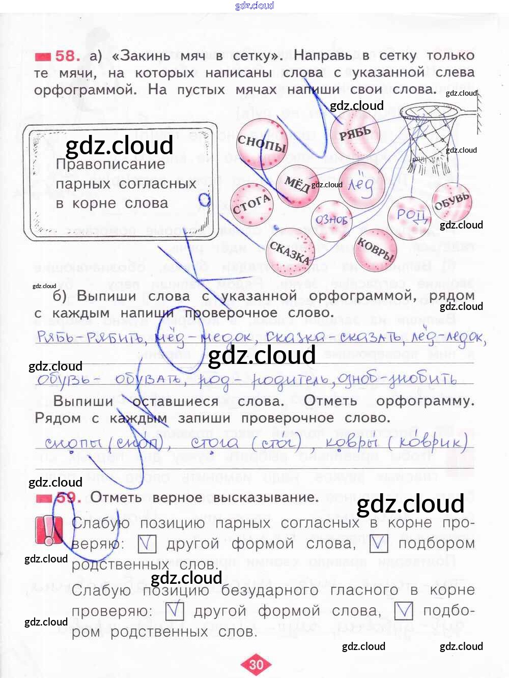 Ответ на задание 30 Рабочая тетрадь Русский язык за 2 (второй) класс Яковлева 2015 Часть 1, 2, 3, 4
