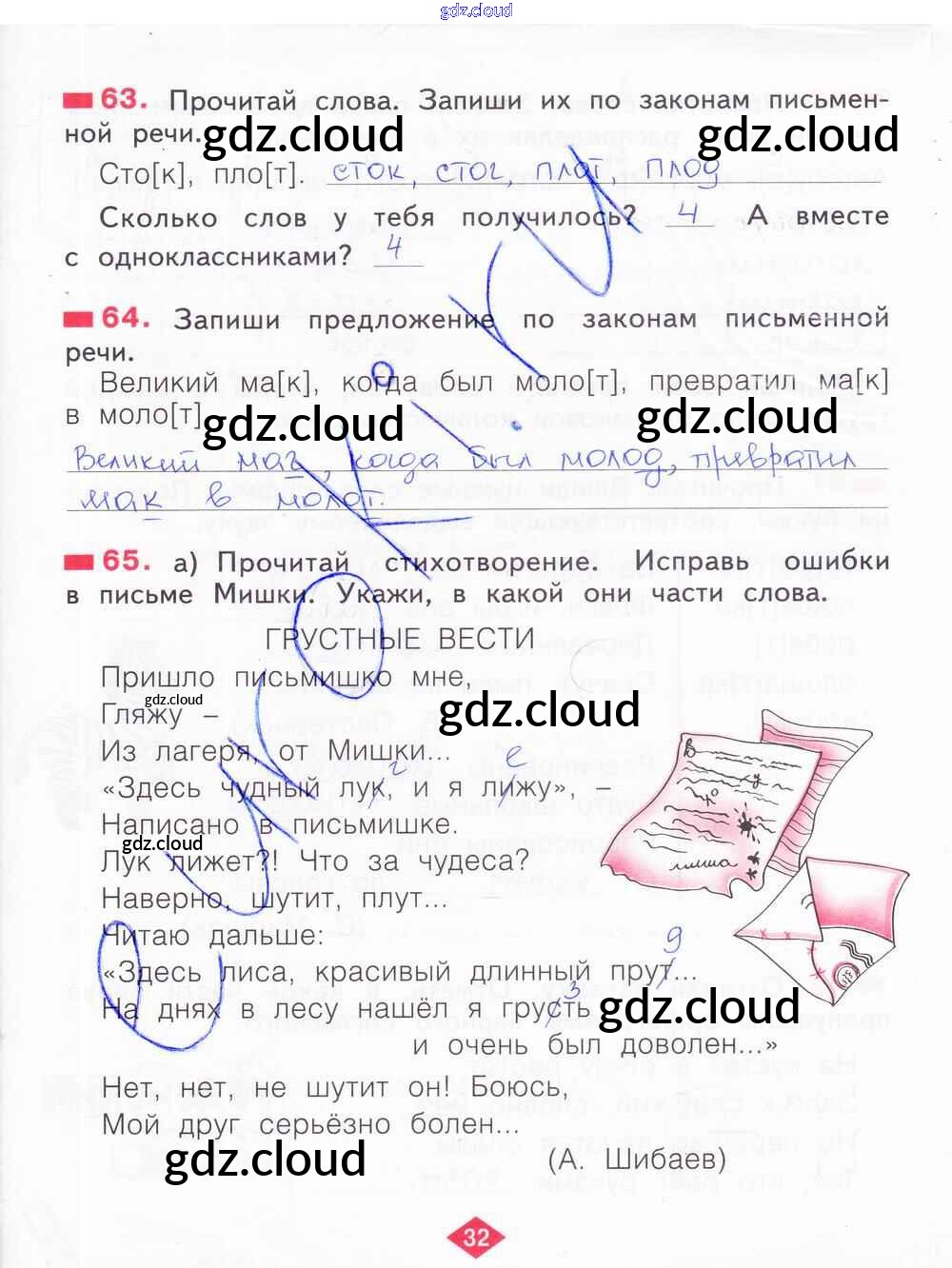 Ответ на задание 32 Рабочая тетрадь Русский язык за 2 (второй) класс Яковлева 2015 Часть 1, 2, 3, 4