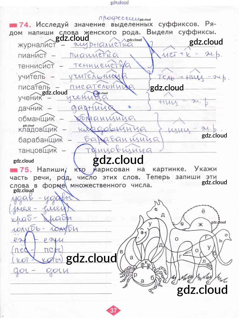 Ответ на задание 37 Рабочая тетрадь Русский язык за 2 (второй) класс Яковлева 2015 Часть 1, 2, 3, 4