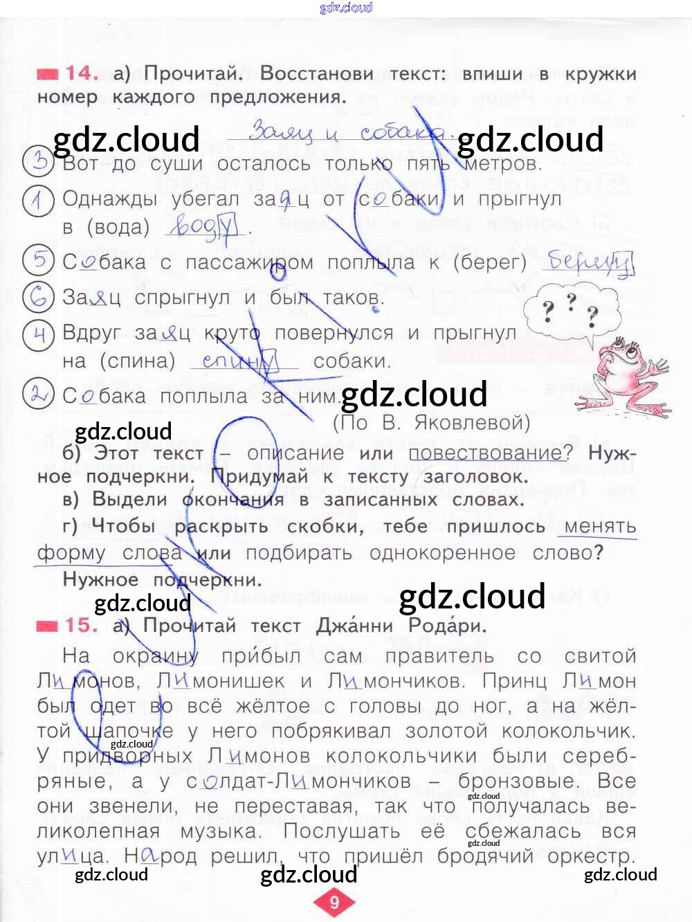 Ответ на задание 9 Рабочая тетрадь Русский язык за 2 (второй) класс Яковлева 2015 Часть 1, 2, 3, 4