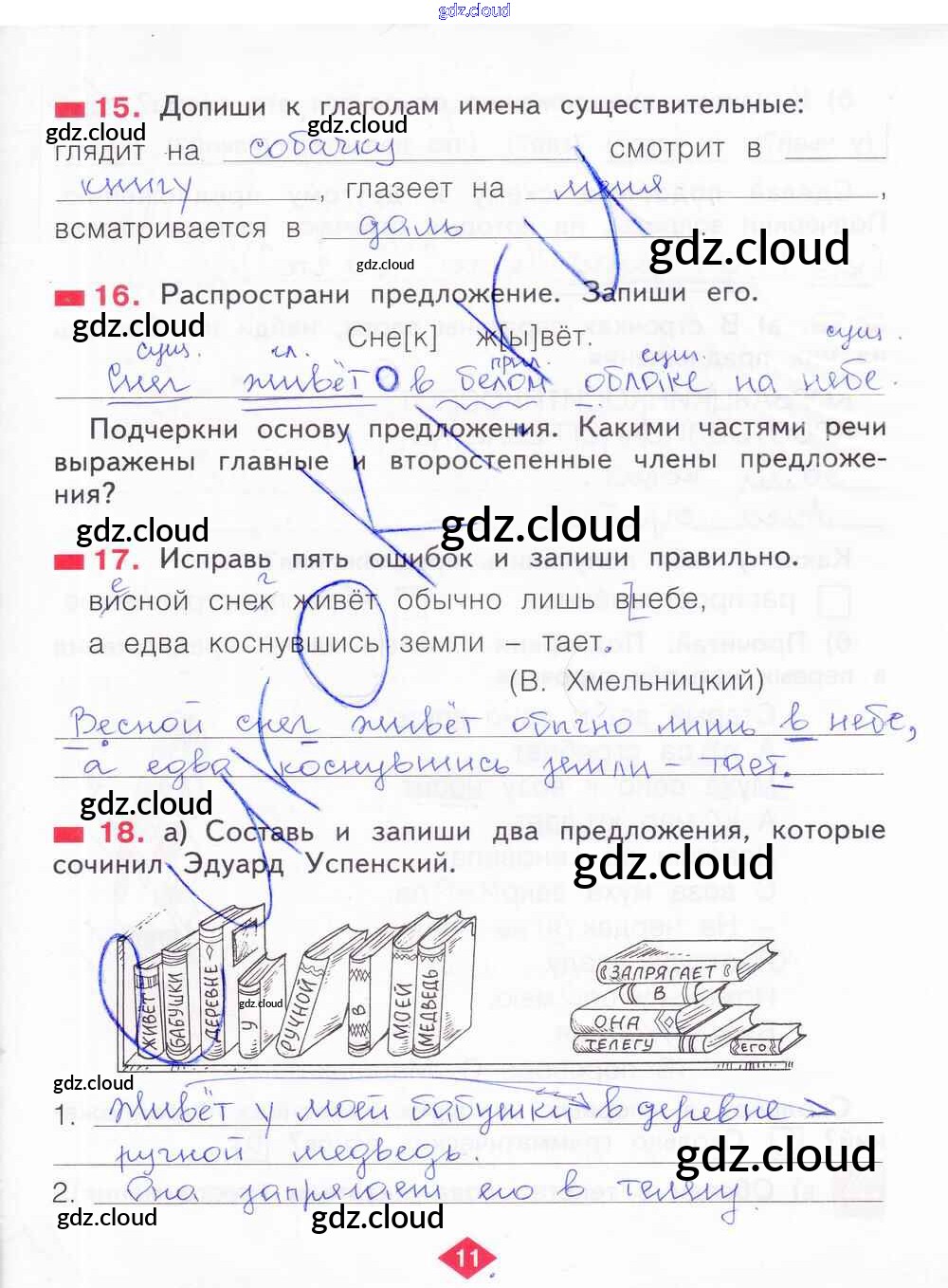 Ответ на задание 11 Рабочая тетрадь Русский язык за 2 (второй) класс Яковлева 2015 Часть 1, 2, 3, 4